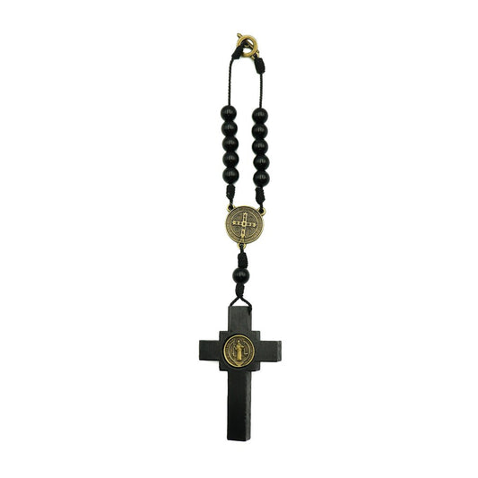 Cruz para carro cordão madeira cilíndrico 7cm com São Bento Ouro Velho (8386)