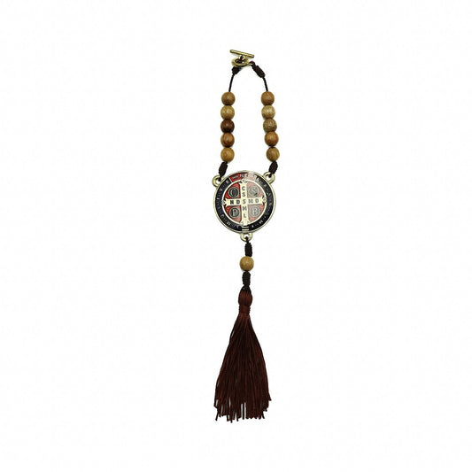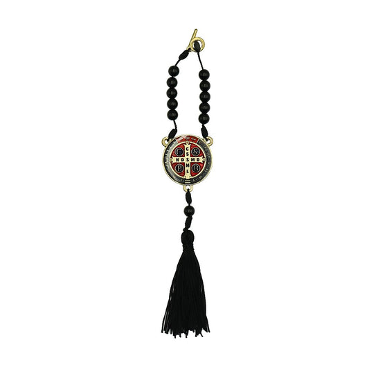 Dezena Com Fecho Mesclada 8mm Inox Vermelho Prata Velha Cruz de São Bento