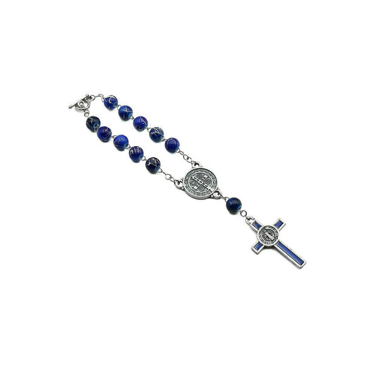 Dezena Com Fecho Mesclada 8mm Inox Azul Cruz São Bento