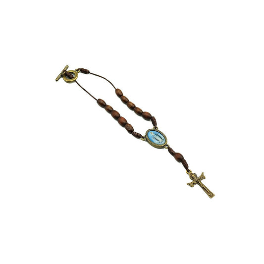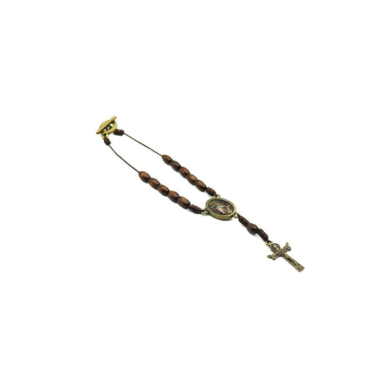 Cruz para carro cordão madeira cilíndrico 7cm com São Bento Ouro Velho (8386)