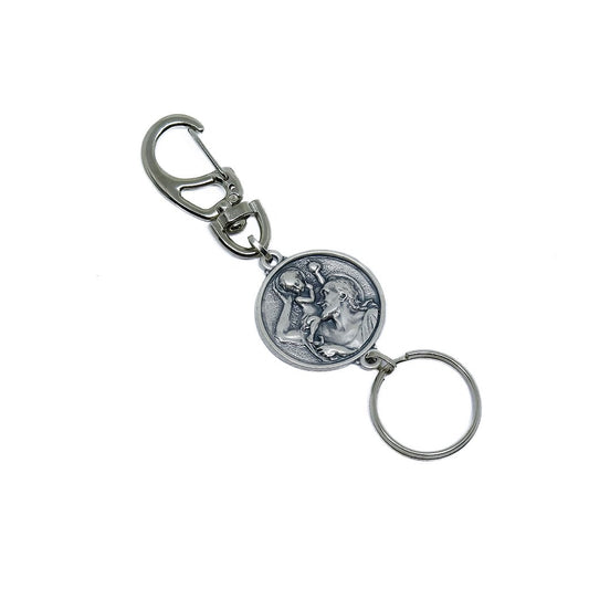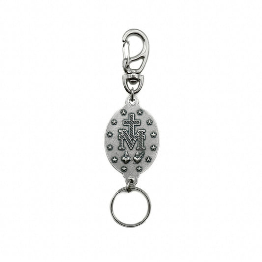 Chaveiro Nossa Senhora Das Graças Extra Grande Com Mosquetão Prata Velha
