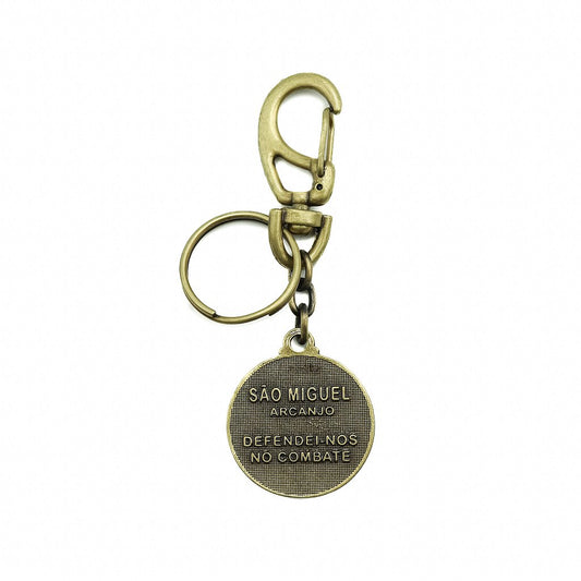 Chaveiro São Miguel Redondo Grande Ouro Velho com Mosquetão