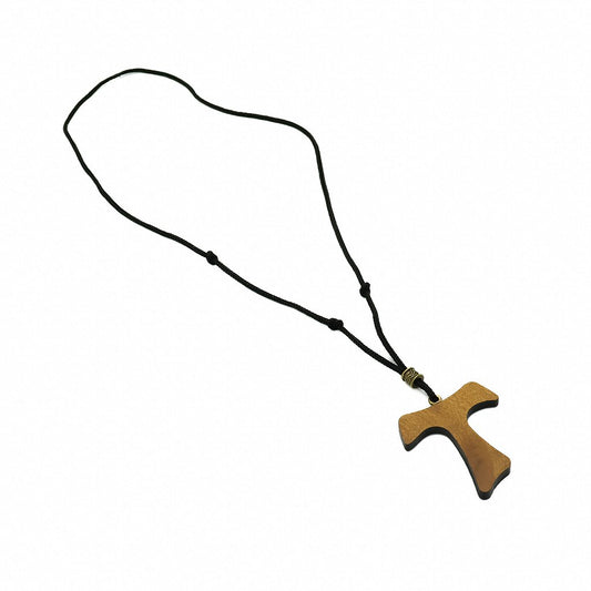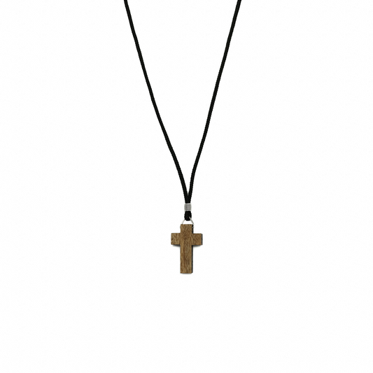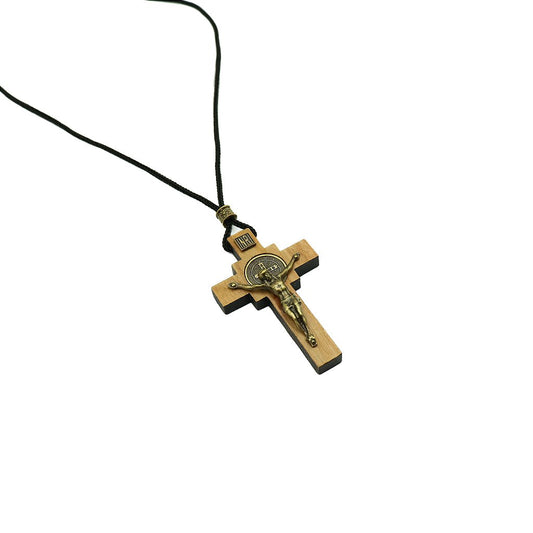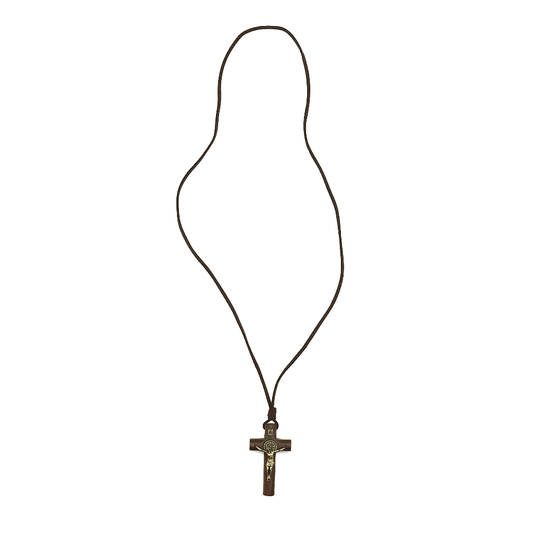 Cordão Cruz Madeira Cilíndrica 6cm Chagas de Cristo São Bento Ouro Velho