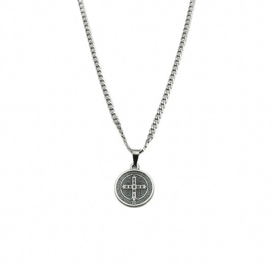 Colar Medalha de São Bento pequena Prata Velho com Folheto