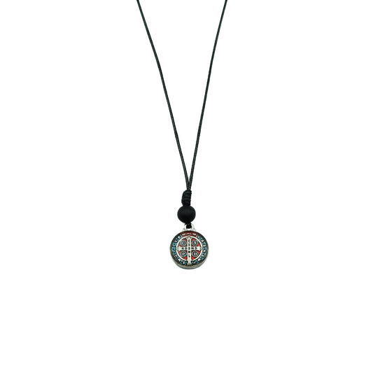 Colar Medalha de São Bento pequena Níquel Resinada com Folheto