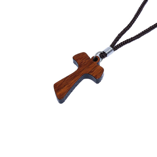 Cordão Cruz Moldada Imbuia Com Cristo 5 cm