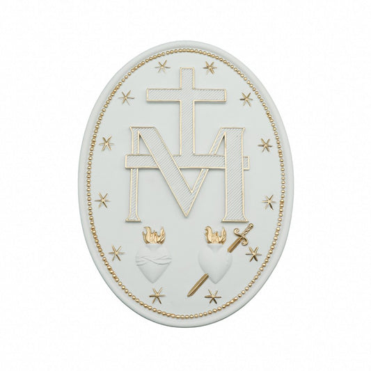 Medalha Milagrosa 23 cm (par) Branco com Dourado