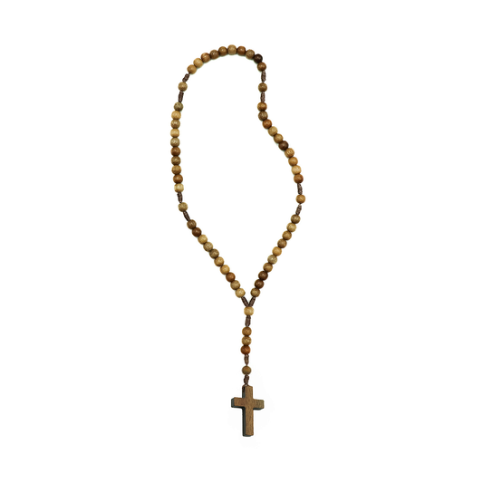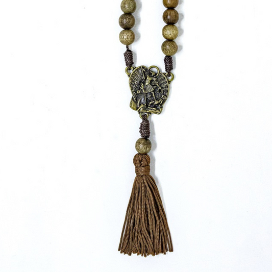 Dezena Com Fecho Madeira Vermelha 8mm Triângulo Santa Teresinha Prata Velha