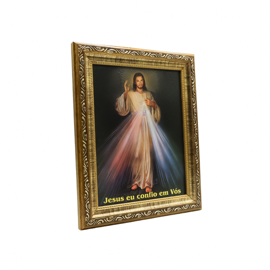 Quadro 20 x 25 moldura Dourada Jesus Misericordioso