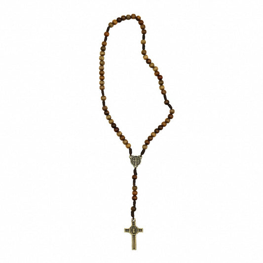 Nossa Senhora São BentoNossa Senhora São BentoTerço madeira contas frizadas cordão marrom escuro cruz de madeira com medalha de São Bento prata - Medjugorje