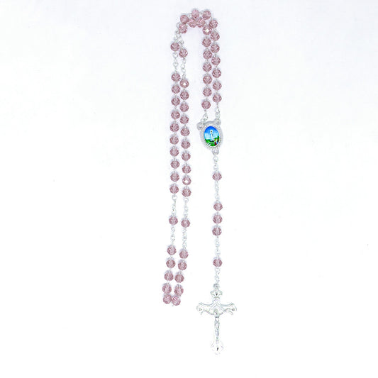 Terço Cristal 6mm Rosa - Nossa Senhora de Fátima