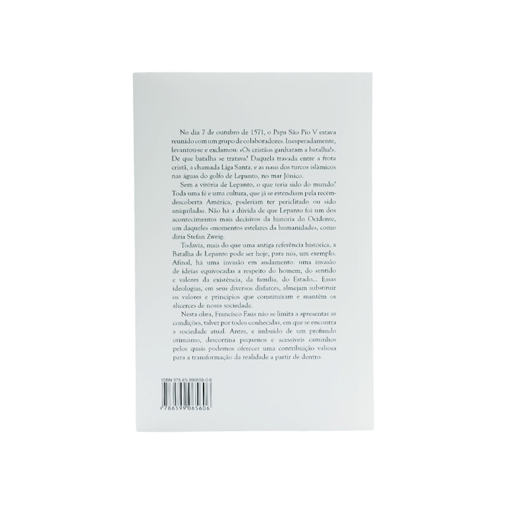 No dia 7 de outubro de 1571, o Papa São Pio V estava reunido com um grupo de colaboradores. Inesperadamente, levantou-se e exclamou: "Os cristãos ganharam a batalha!". De que batalha se tratava? Daquela travada entre a frota cristã, a chamada Liga Santa, e as naus dos turcos islâmicos nas águas do golfo de Lepanto, no mar Jônico. Sem a vitória de Lepanto, o que teria sido do mundo? Toda uma fé e uma cultura, que já se estendiam pela recém-descoberta América, poderiam ter periclitado ou sido aniquiladas. Não há dúvida de que Lepanto foi um dos acontecimentos mais decisivos da história do Ocidente, um daqueles "momentos estelares da humanidade", como diria Stefan Zweig. Todavia, mais do que uma antiga referência histórica, a Batalha de Lepanto pode ser hoje, para nós, um exemplo. Afinal, há uma invasão em andamento: uma invasão de ideias equivocadas a respeito do homem, do sentido e valores da existência, da família, do Estado... Essas ideologias, em seus diversos disfarces, almejam substituir os valores e princípios que constituíram e mantêm os alicerces de nossa sociedade. Nesta obra, Francisco Faus não se limita a apresentar as condições, talvez por todos conhecidas, em que se encontra a sociedade atual. Antes, e imbuído de um profundo otimismo, descortina pequenos e acessíveis caminhos pelos quais podemos oferecer uma contribuição valiosa para a transformação da realidade a partir de dentro.