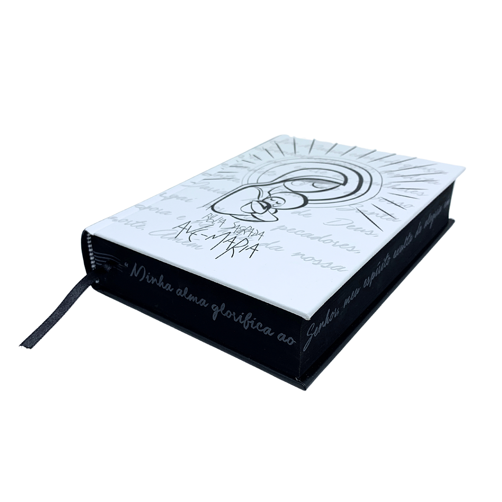 O modelo Capa Maria é ousado e diferente de todas as outras capas feitas pela Editora Ave-Maria. A ilustração de Maria com o Menino Jesus, as formas e o estilo apresentam uma opção de capa inédita e surpreendente.
