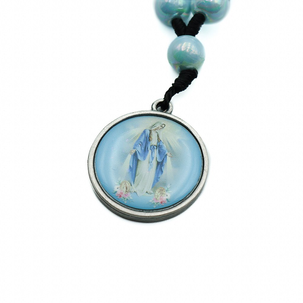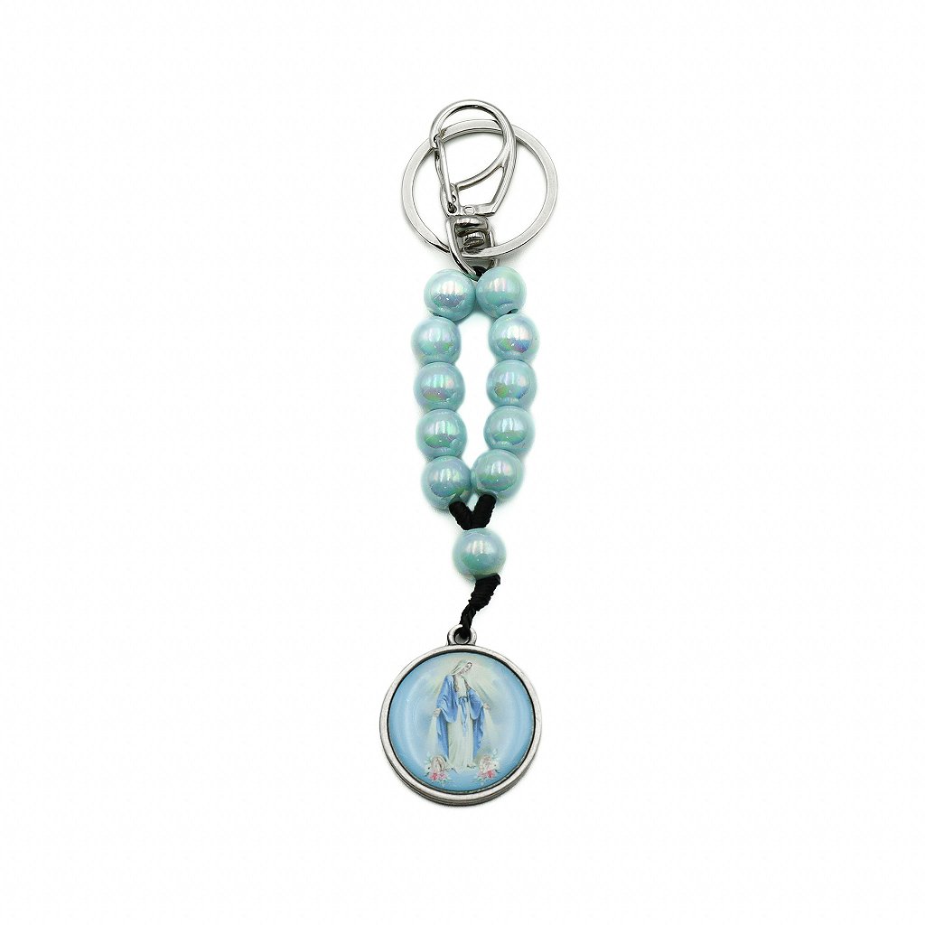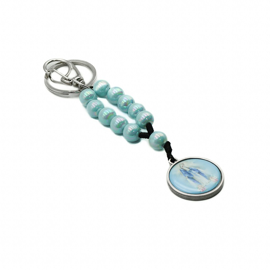 Esse lindo chaveiro dezena é uma peça delicada e cheia de significado, perfeita para carregar a proteção de Nossa Senhora das Graças em todos os lugares. Com contas azuis que dão um toque especial e elegante, ele traz uma medalha de metal com acabamento em resina, destacando a imagem de Nossa Senhora com detalhes vibrantes e duradouros.