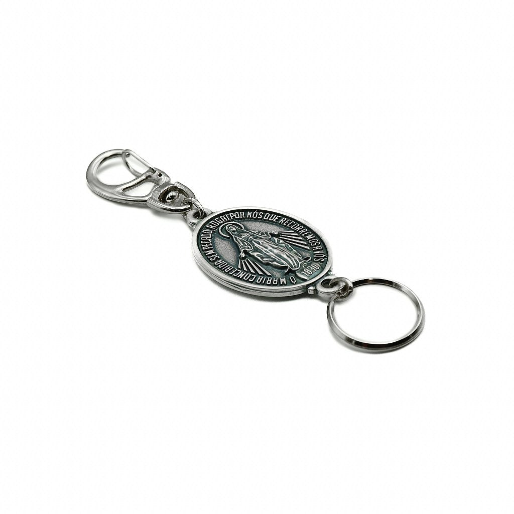Chaveiro Dezena Com Medalha Resinada São Miguel Glorioso Hesed - Azul Perolado