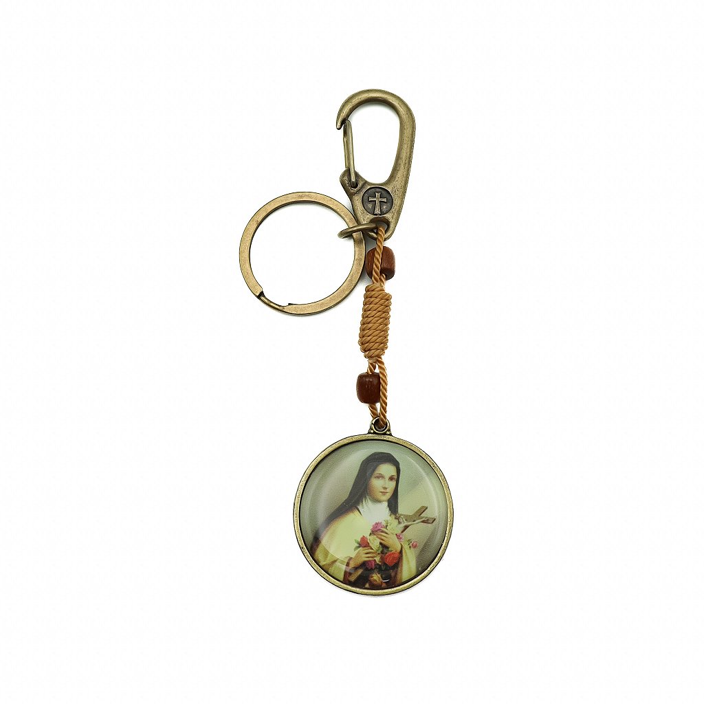 Com design redondo e imagem devocional em detalhes nítidos, este chaveiro é prático e durável. O mosquetão e a argola facilitam o uso em chaves, bolsas ou mochilas, para que a proteção e o exemplo de Santa Teresinha estejam presentes em todos os momentos.
