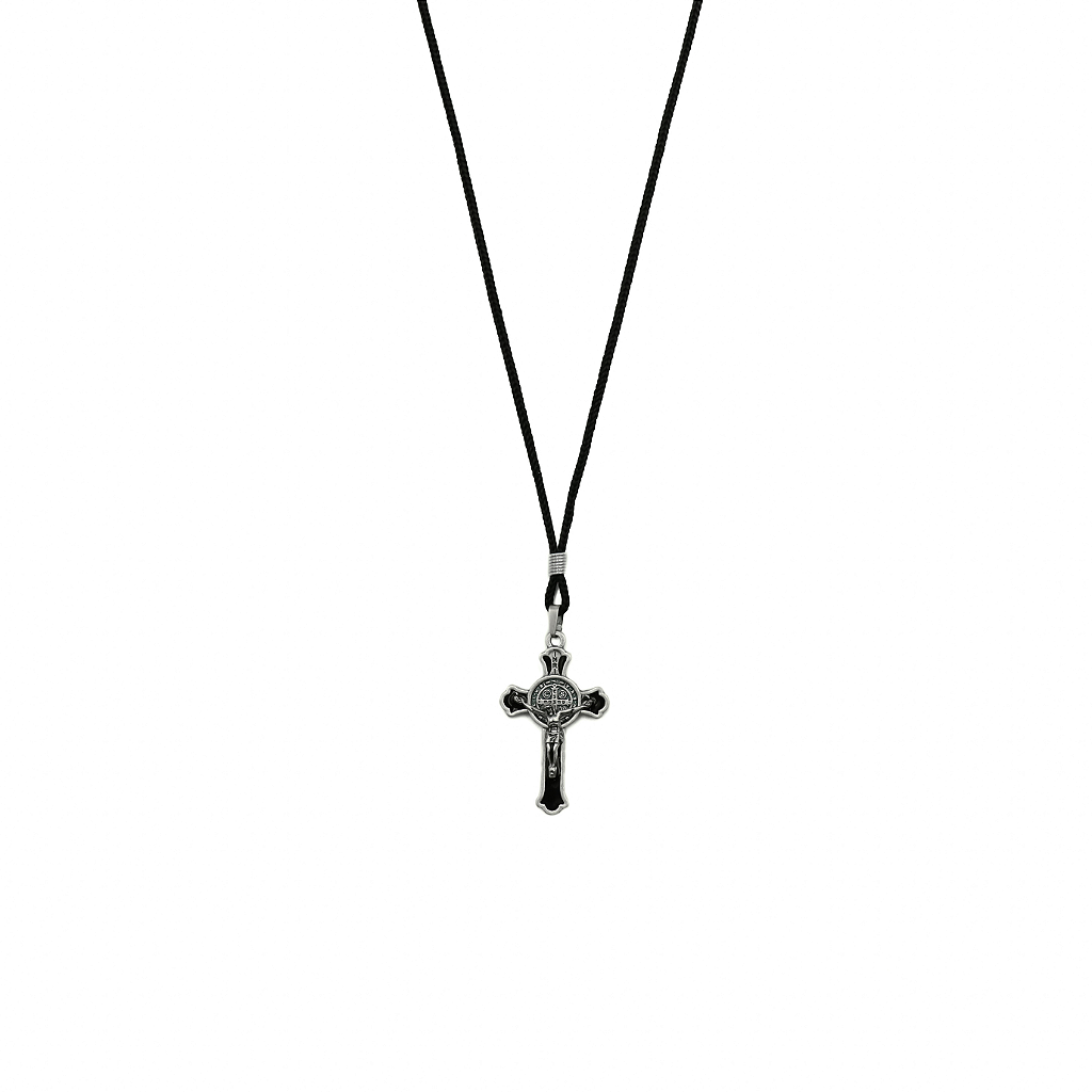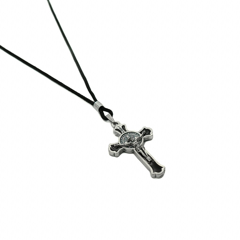 A tonalidade prata velha confere à peça um toque clássico e atemporal, ideal para quem deseja expressar sua fé com discrição, elegância e força. Este colar é mais do que um ornamento: é um lembrete diário de que Deus caminha à sua frente, e São Bento intercedei por sua segurança espiritual.