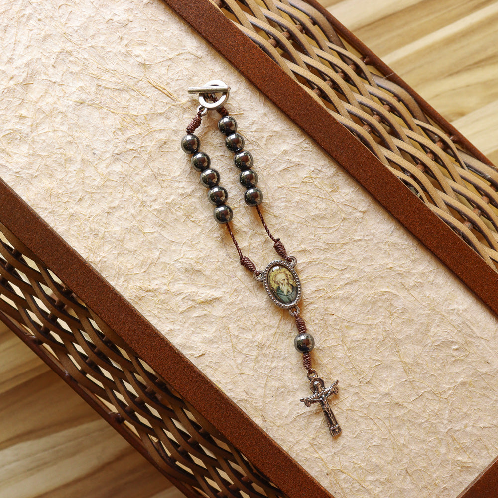 Dezena de Carro Hematita 8mm no Cordão - São Bento