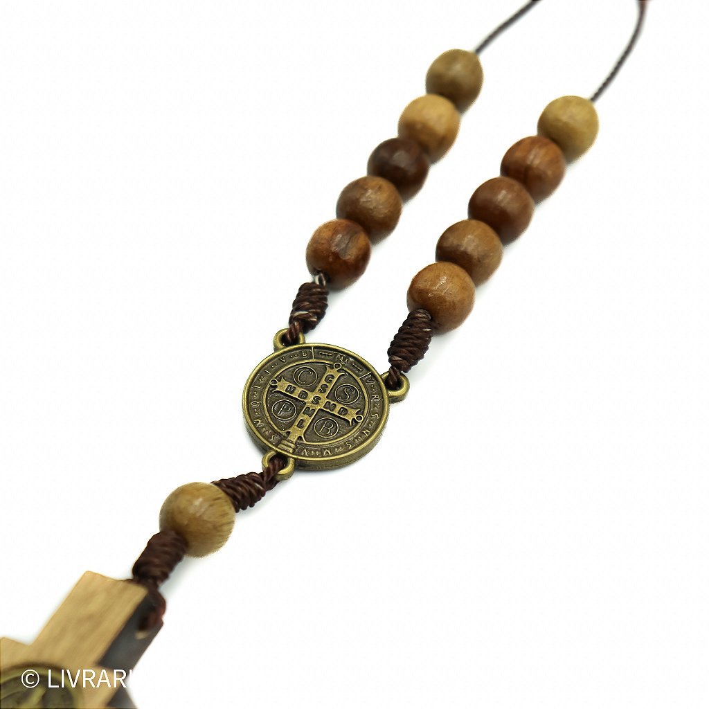 Ela traz uma elegante cruz de quatro cantos em formato triangular, confeccionada em madeira e metal. Esta dezena é um acessório discreto e moderno, combinando Madeira e os detalhes em metal, oferecendo durabilidade e estilo.