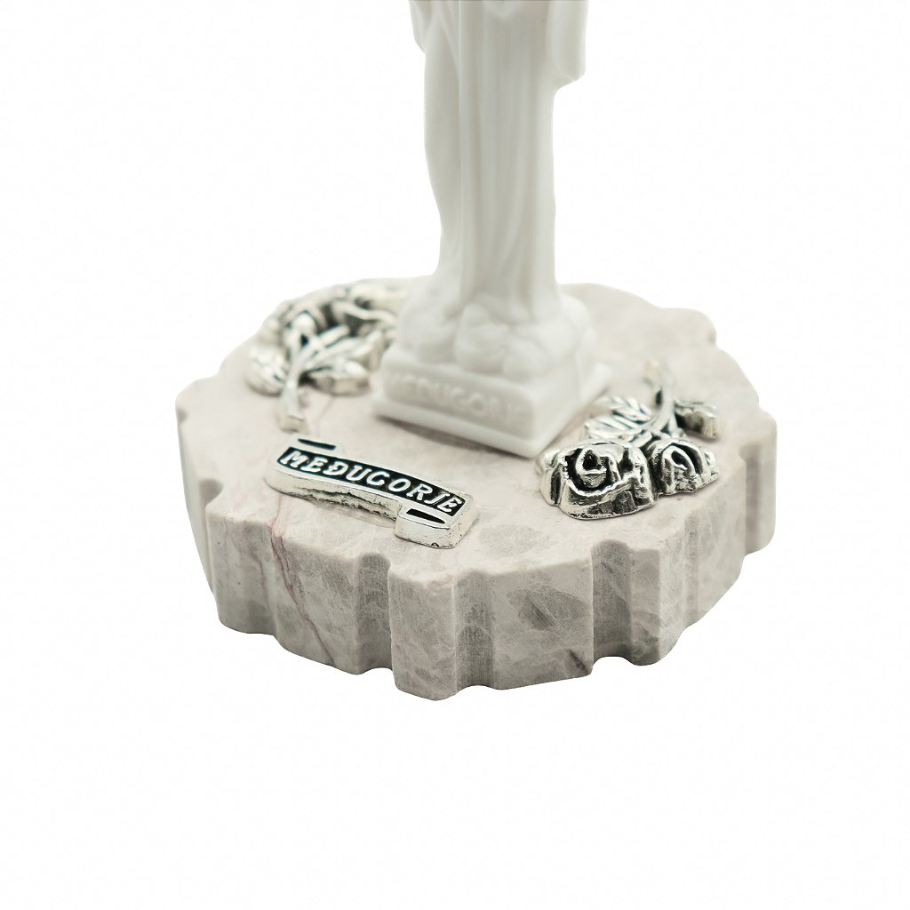 Imagem Rainha da Paz com base em pedra 8cm e rosas prateadas