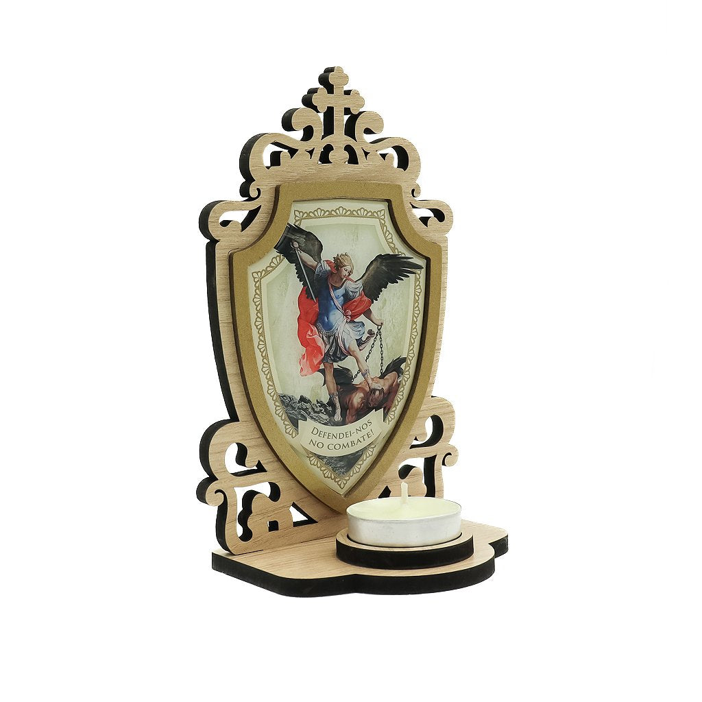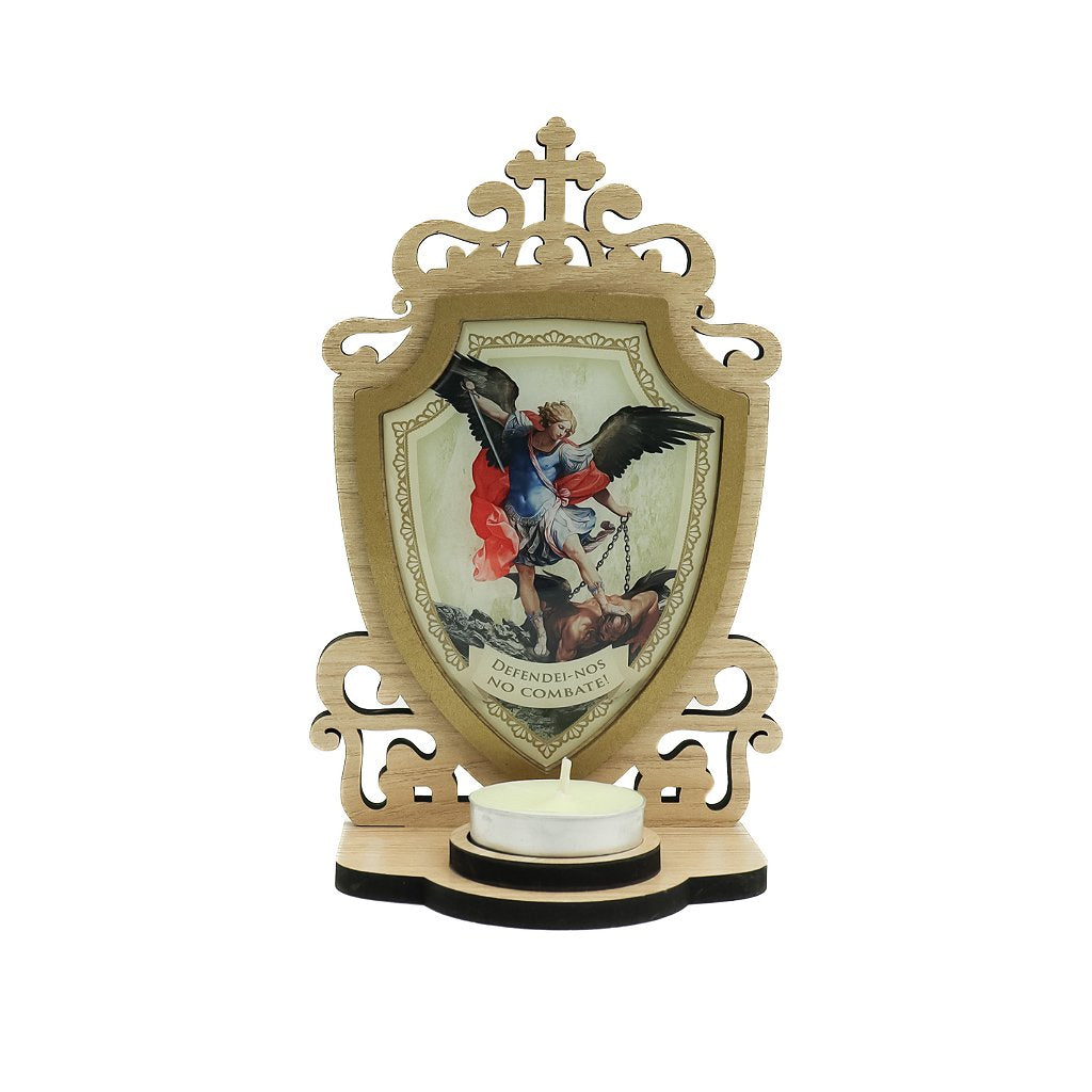 Ilumine seus momentos de oração e traga a poderosa proteção de São Miguel Arcanjo para o seu lar com esta linda luminária São Miguel com Vela Mini.