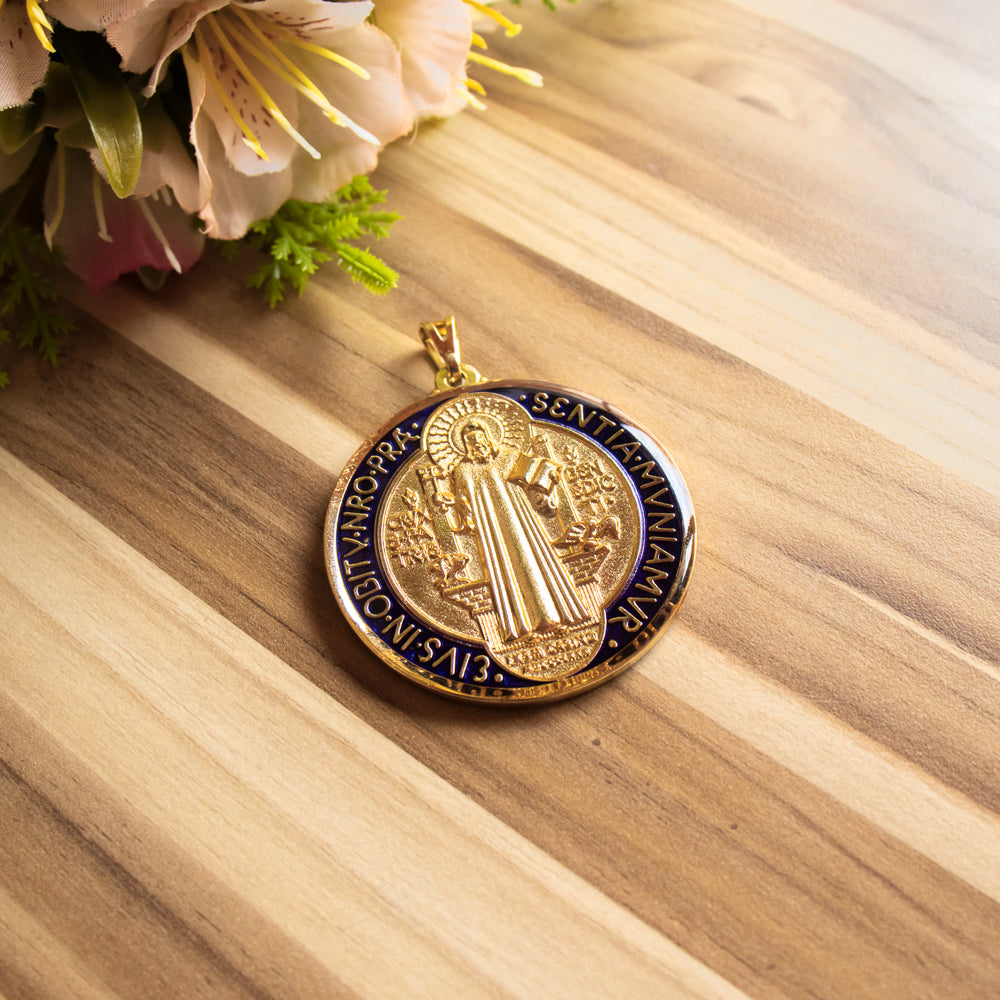 Conheça a Medalha de São Bento, no tamanho de 5 cm, dourada com aplicação de resina. São numerosos os fatos maravilhosos atribuídos a esta medalha. Ela nos assegura poderoso socorro contra as ciladas do demônio e também para alcançar graças espirituais.