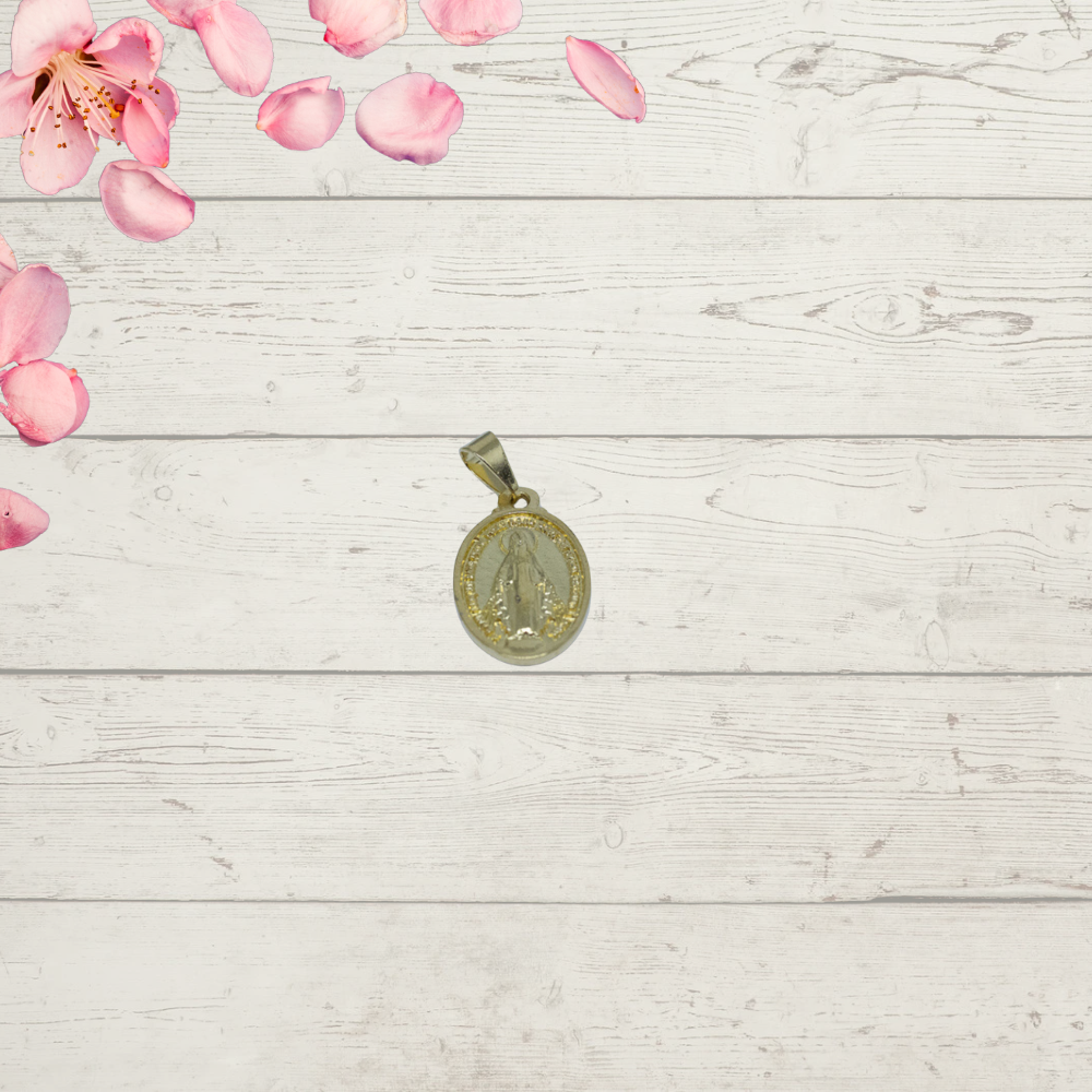 Esta Medalha Milagrosa de Nossa Senhora das Graças, com 1,8 cm de tamanho, é uma peça delicada e significativa. Feita em dourado ela destaca-se pela sua beleza e simbolismo.