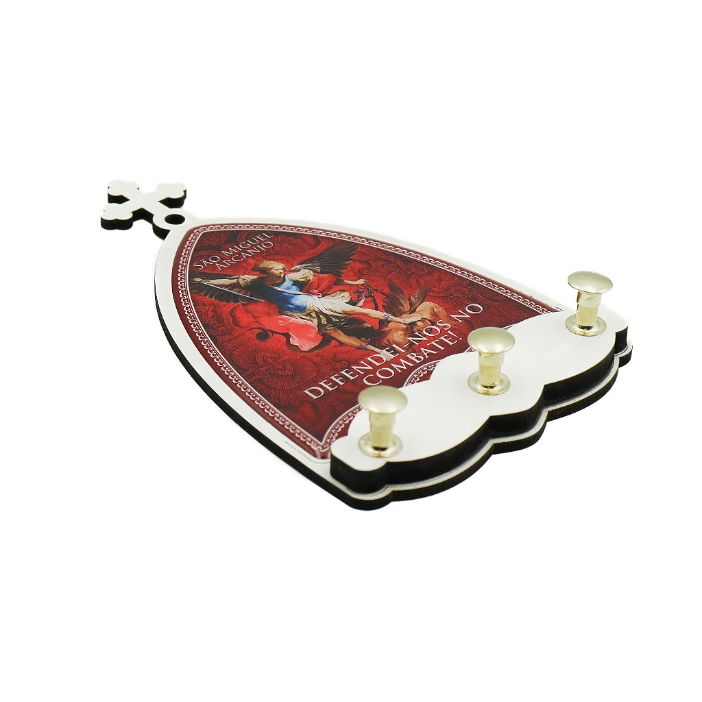 Organize suas chaves com devoção e estilo com o Porta Chaves Mini Capela - São Miguel Arcanjo. Feito em MDF de alta qualidade, este porta chaves é projetado no formato de uma pequena capela, trazendo a imagem da Sagrada Família, para proteger e abençoar seu lar.