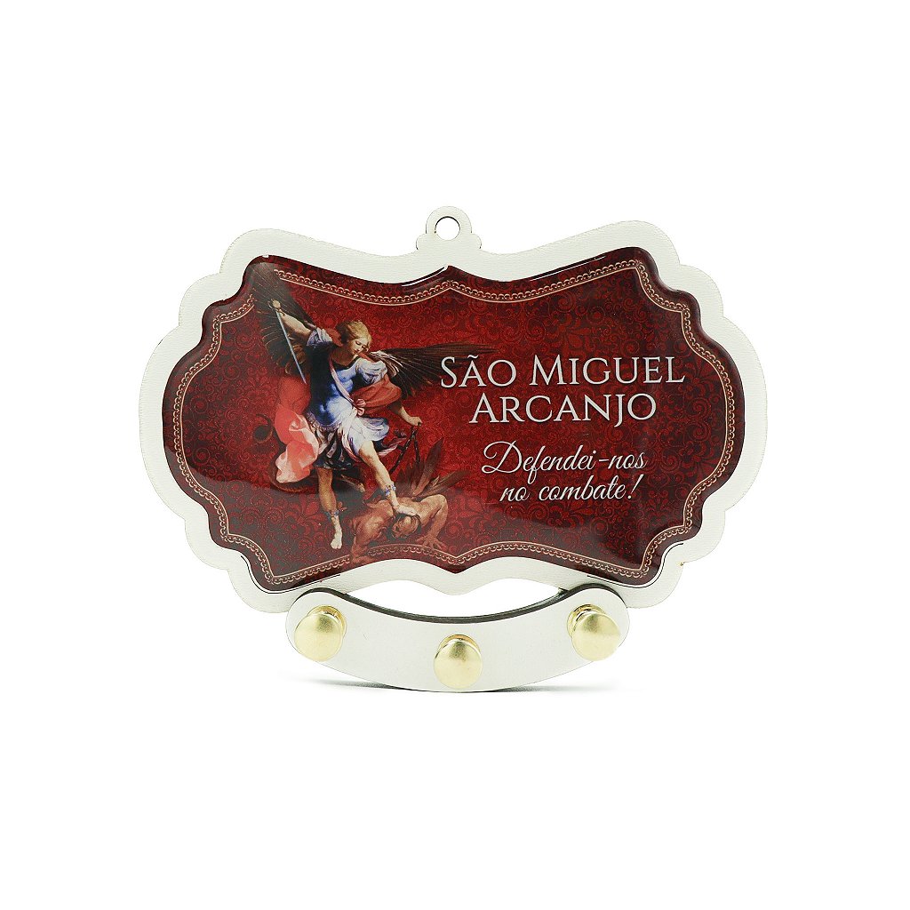 Leve para a sua casa o Porta Chaves São Miguel em MDF com 3 pinos. Uma peça elegante e super funcional para decorar e organizar suas chaves, com a proteção e bênção do Arcanjo São Miguel sob o seu lar.