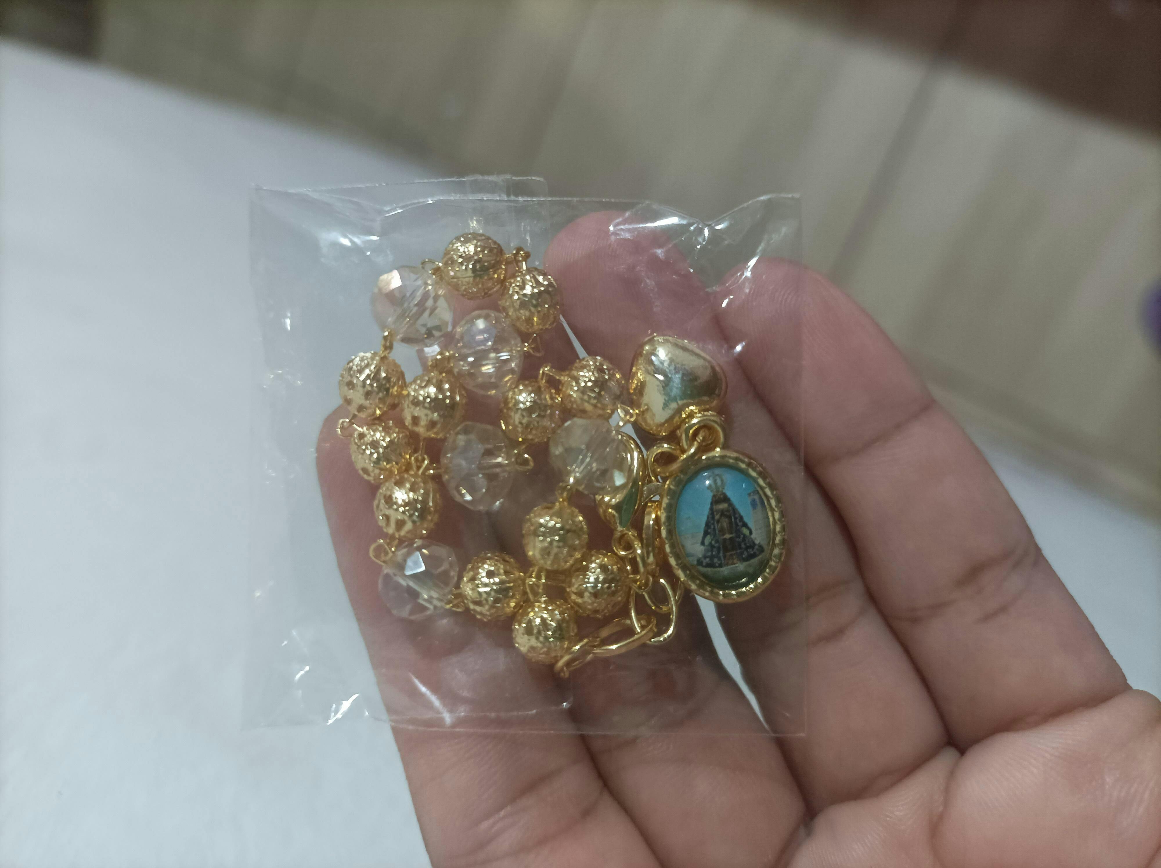 Feita com materiais de alta qualidade, esta pulseira é delicada e perfeita para o uso diário, seja como um lembrete espiritual ou como um acessório significativo de fé. Com contas de Cristal e esfera de metal detalhado em dourado, possuí dois pingentes, um de coração e outro com a imagem de Nossa Senhora Aparecida.