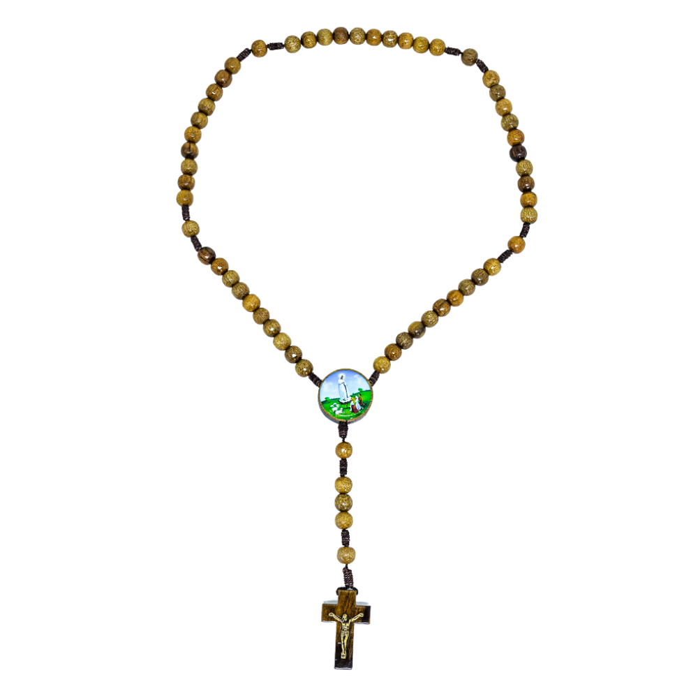 O Terço de 8mm em madeira a Nossa Senhora de Fátima; é um sinal de amor e devoção.