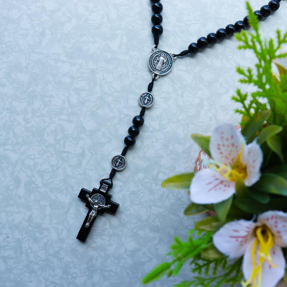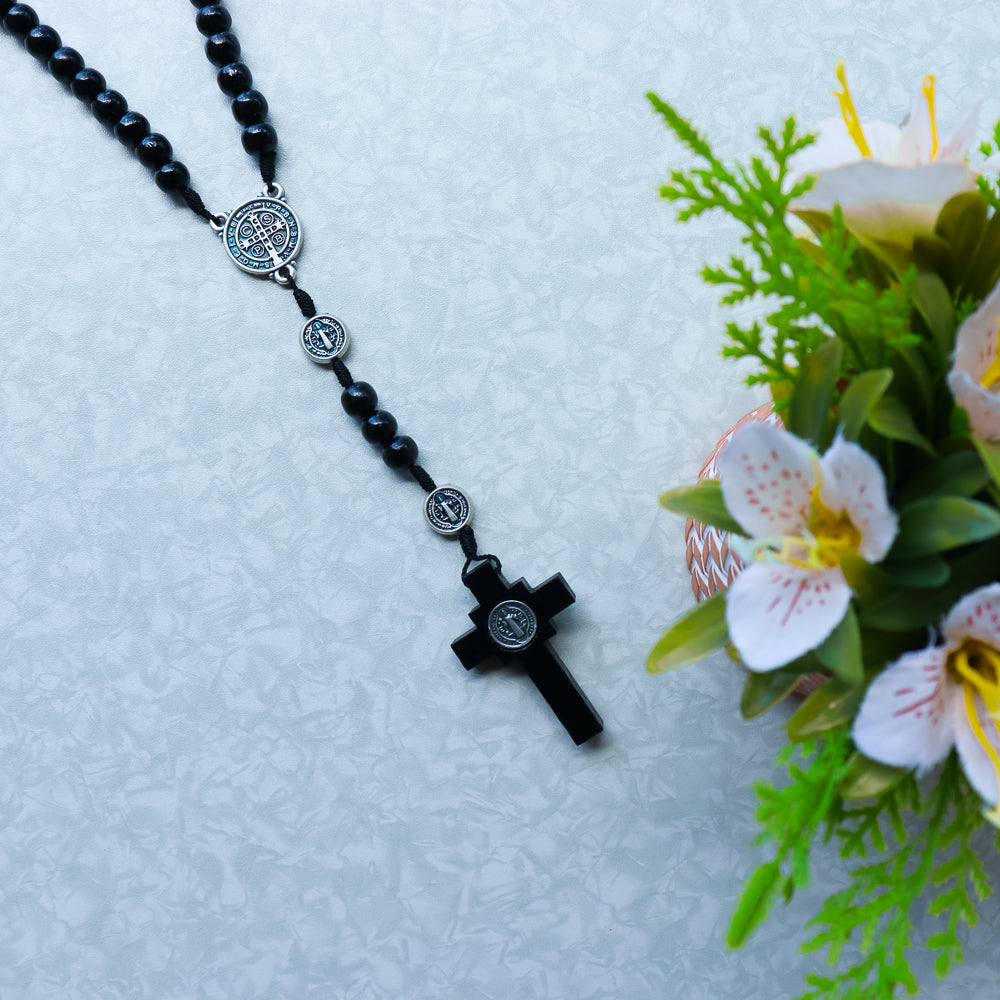 Terço de São Bento Com Medalha No Pai-Nosso - Preto
