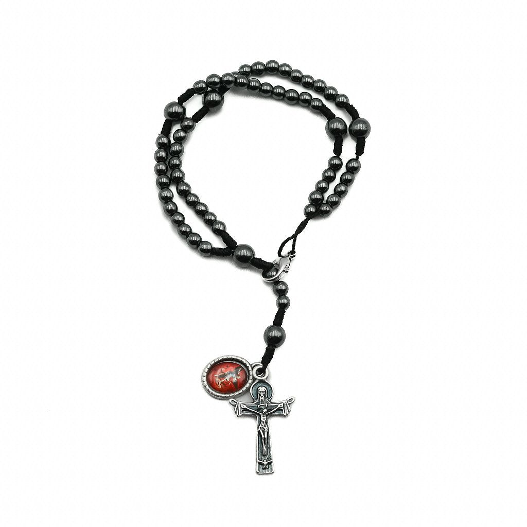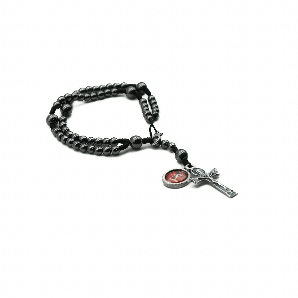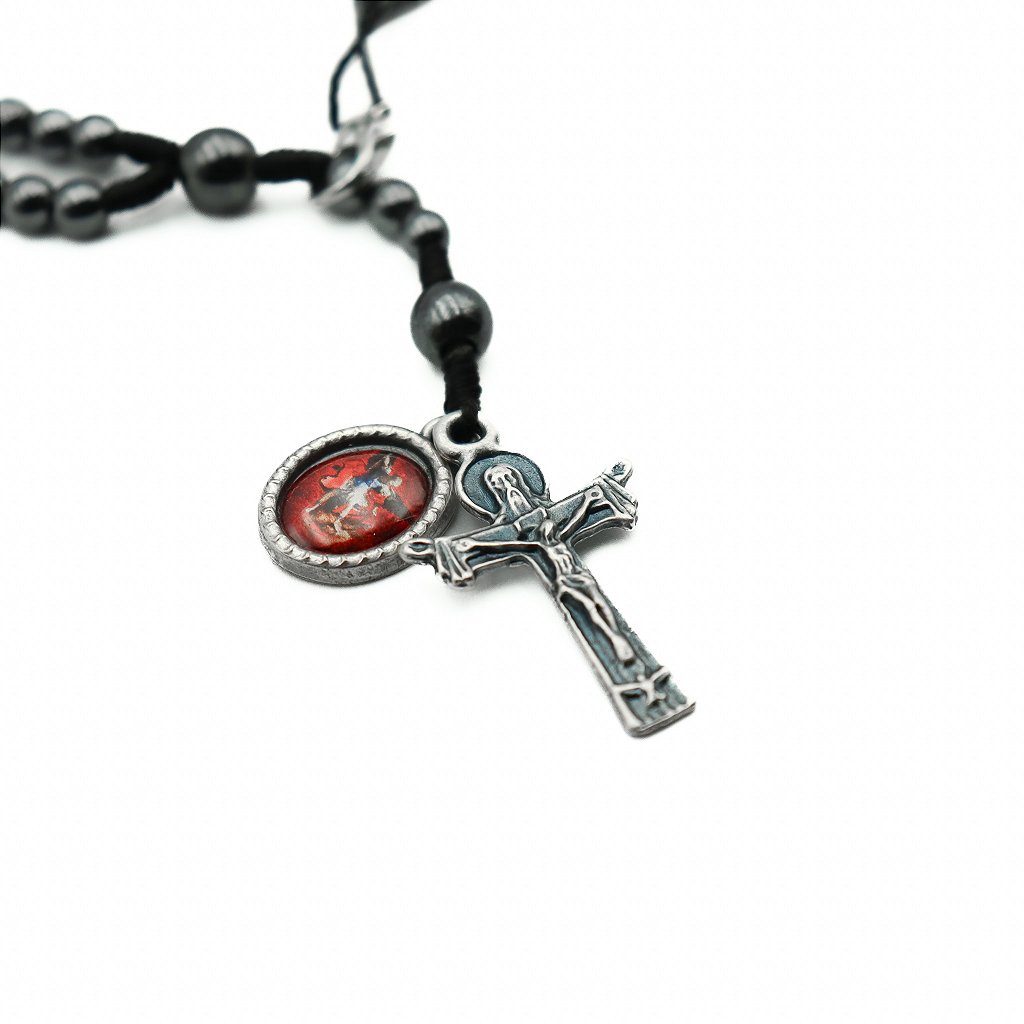 Terço de pulso 4mm Cruz e Pingente resinado São Miguel