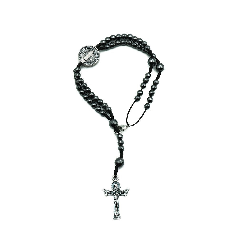 Este elegante terço de pulso em pedras de hematita é mais que um acessório: é um companheiro de oração e um sinal visível de fé e proteção. As contas em hematita trazem um brilho discreto e sofisticado, enquanto a medalha de São Bento reforça a força espiritual contra todo mal. Um acessório ideal para expressar sua fé e devoção, além de ser uma ótima opção para presentear alguém especial.