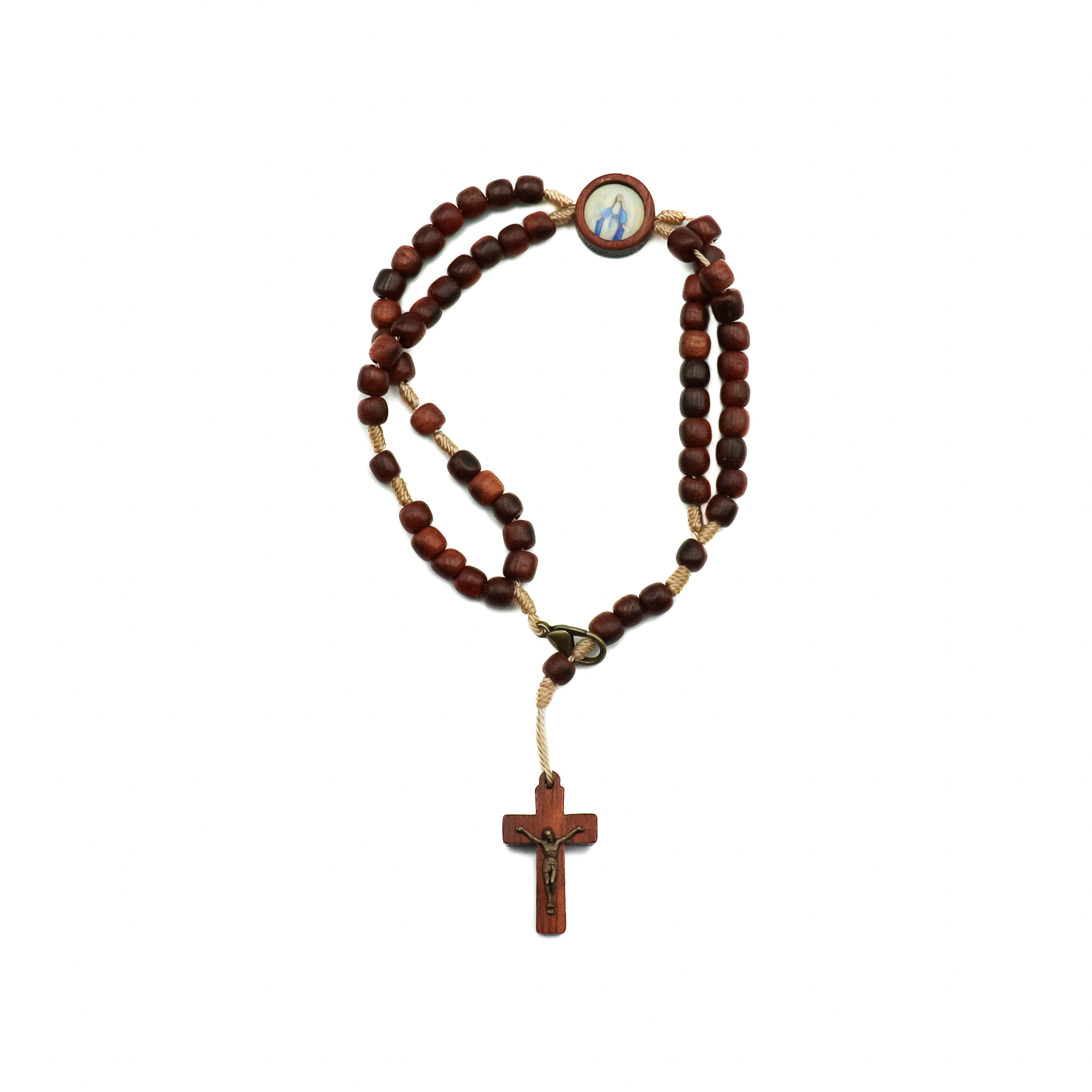 O crucifixo simboliza a presença viva de Cristo, enquanto o entremeio de Nossa Senhora das Graças lembra a ternura e a poderosa intercessão da Mãe de Deus, que ampara e protege seus filhos. Seu design leve e prático faz desta pulseira um convite diário à oração, seja em casa, no trabalho ou em viagem.